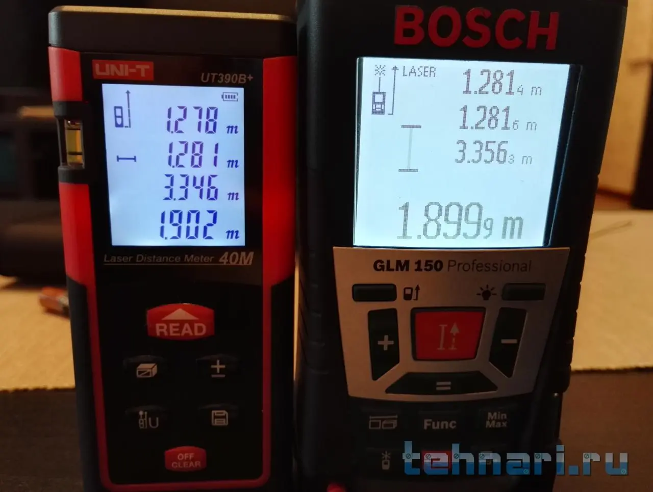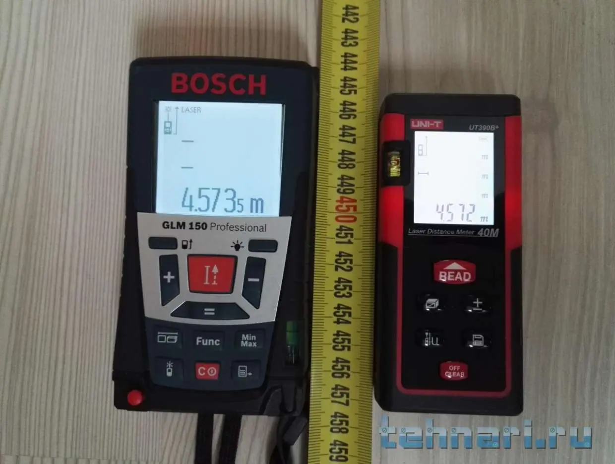 Естественно решил сравнить результаты измерений с "эталонным" относительно китайца - BOSCH GLM150.