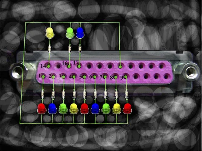 взял всё тот же кусочек оргстекла , наделал в нём дыр , и установил туда светодиоды разных цветов , подключил к LTP всё готово!!