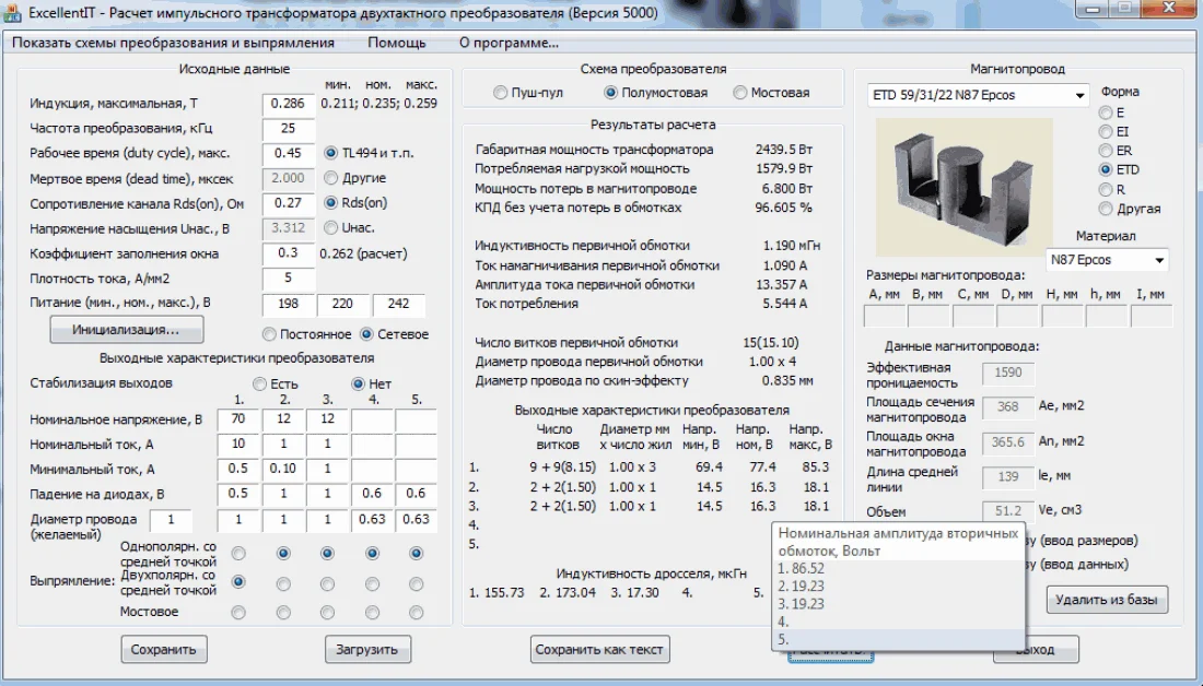 Хотелось бы всетаки цифрами =) И у меня программа 110 витков первички ни как не хотела выдавать, на никаких сердечниках.