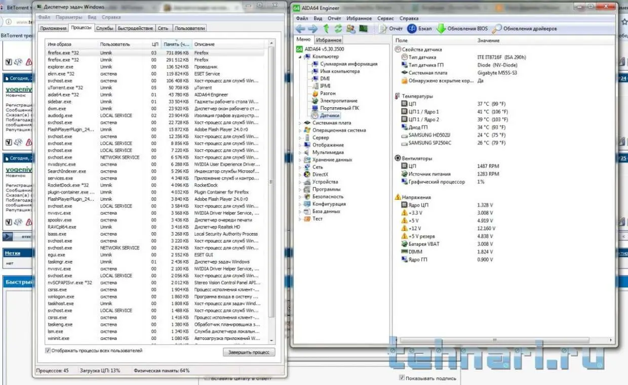 Температуры, вольтаж и загрузка из диспетера задач, плиз. В момент воспроизведения ролика с ютьба.