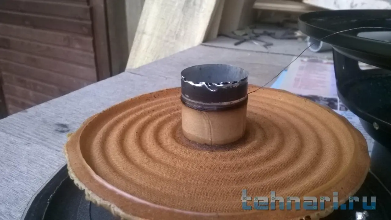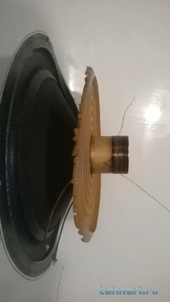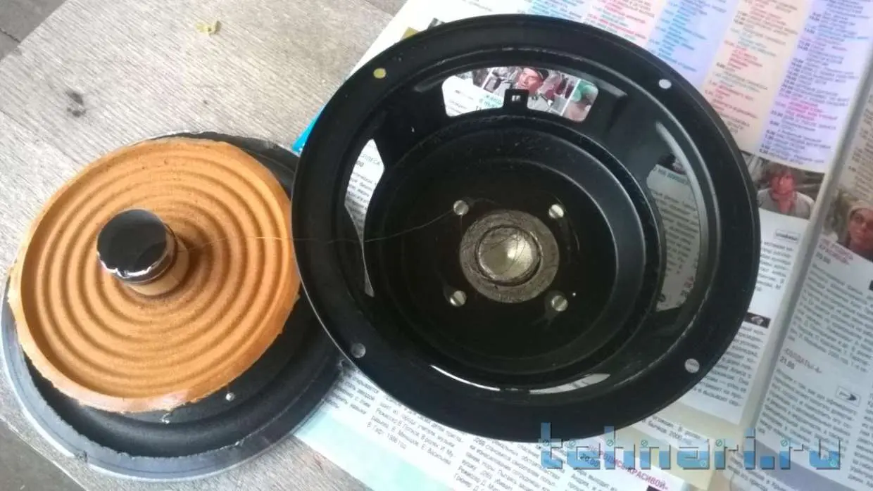 Разобрал динамик, вроде все прошло не плохо за исключением колпачка диффузора , уж очень хорошо его приклеили , растворитель клей не очень взял, малость повредил диффузор, оторвать идеально не получилось. Вообщем обнаружил обрыв обмотки катушки, само основание в порядке, только оно из плотной фольги.