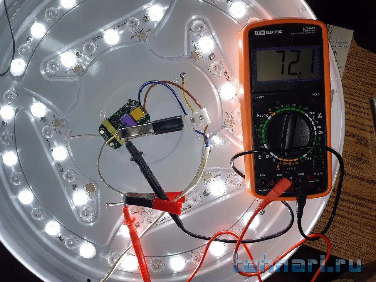 Вот Отпаял получается у драйвера для холодного освещения, тем самым ток понизился до 0.07 А = 70 мА