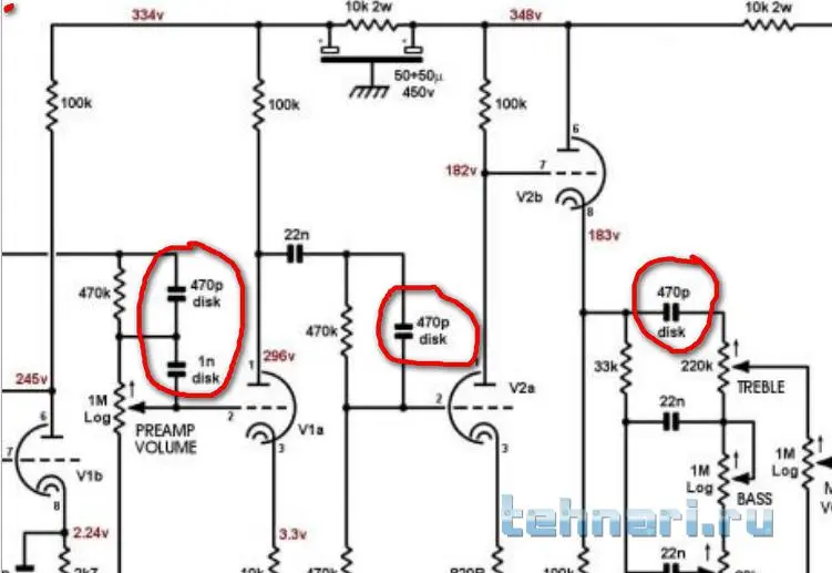 В эту схему, как и в любую другую подобную надо поставить пленочные конденсаторы, напрочь забыв про керамические. За неимением пленочных нужного номинала можно старые слюдяные воткнуть, по любому лучше керамических будут. Или металлобумажные. Многослойным китайским конденсаторам там делать нечего.А в эту схему они подойдут ?