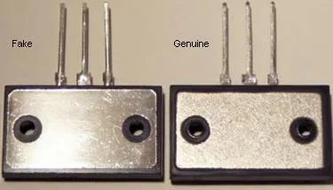 В большей степени отличие проявляется в технологии производства, и, как следствие, снижении качества. А точнее в несоблюдении ее при производстве серых компонентов, в том числе и транзисторов. Фото для примера (слева - подделка, справа - оригинал).