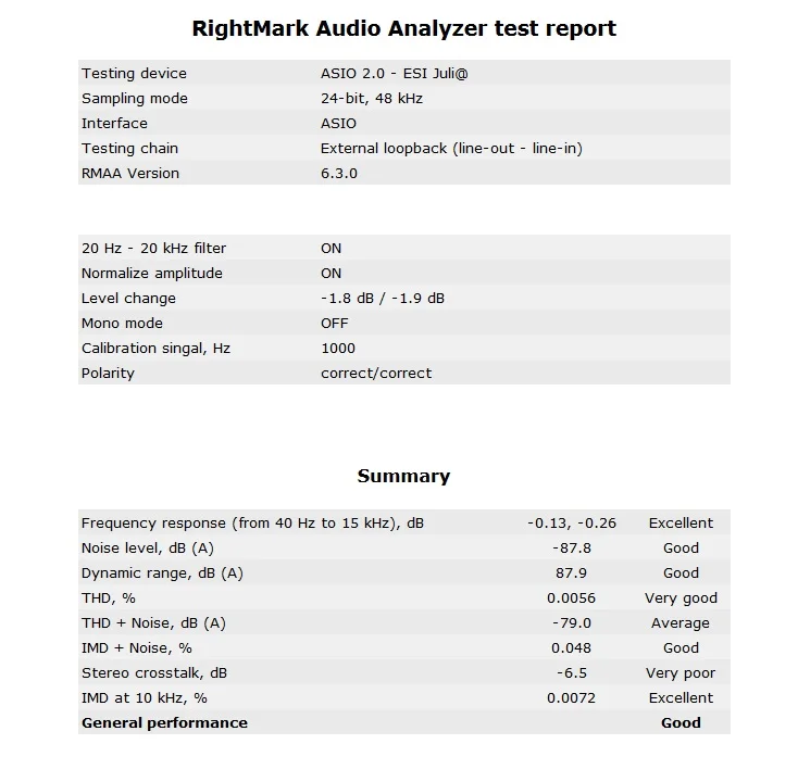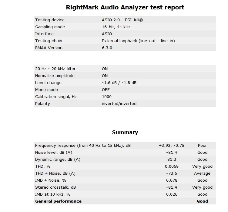 Тот же самый замер, но теперь уже с входными клеммами посаженными на корпус усилителя. В предыдущем замере клеммы были изолированы
