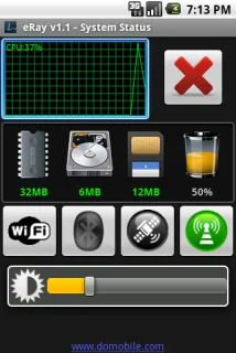 DoMobile eRay - продвинутый менеджер задач, с красивым оформлением, и 3D иконками. Можно контролировать зарядку батареи, отслеживать куда уходит заряд, оперативная память, закрывать фоновые приложения.