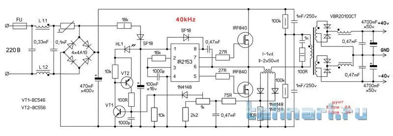 Вот таким диодом. Кстати, IR2153 нужно рулить двумя ключами, у неё потребление не меньше, однако, судя по схеме, одноваттного резистора вполне достаточнокаким диодом, там добавлены конденсатор и резистор