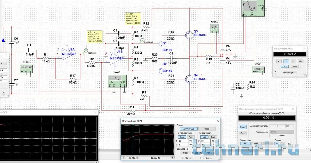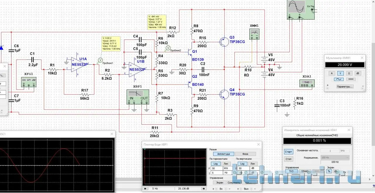 Закинул одну из последних схем Китафончика в симулятор и вот что он мне выдал.