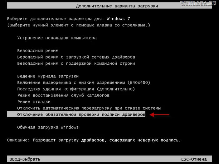 2. Отключите проверку подписи драйверов (что в общем-то делать НЕ рекомендуется).
