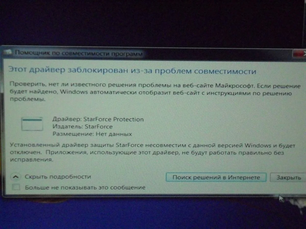 при запуске компьютера появляется сообщение: драйвер заьлокирован из-за не совместимости.