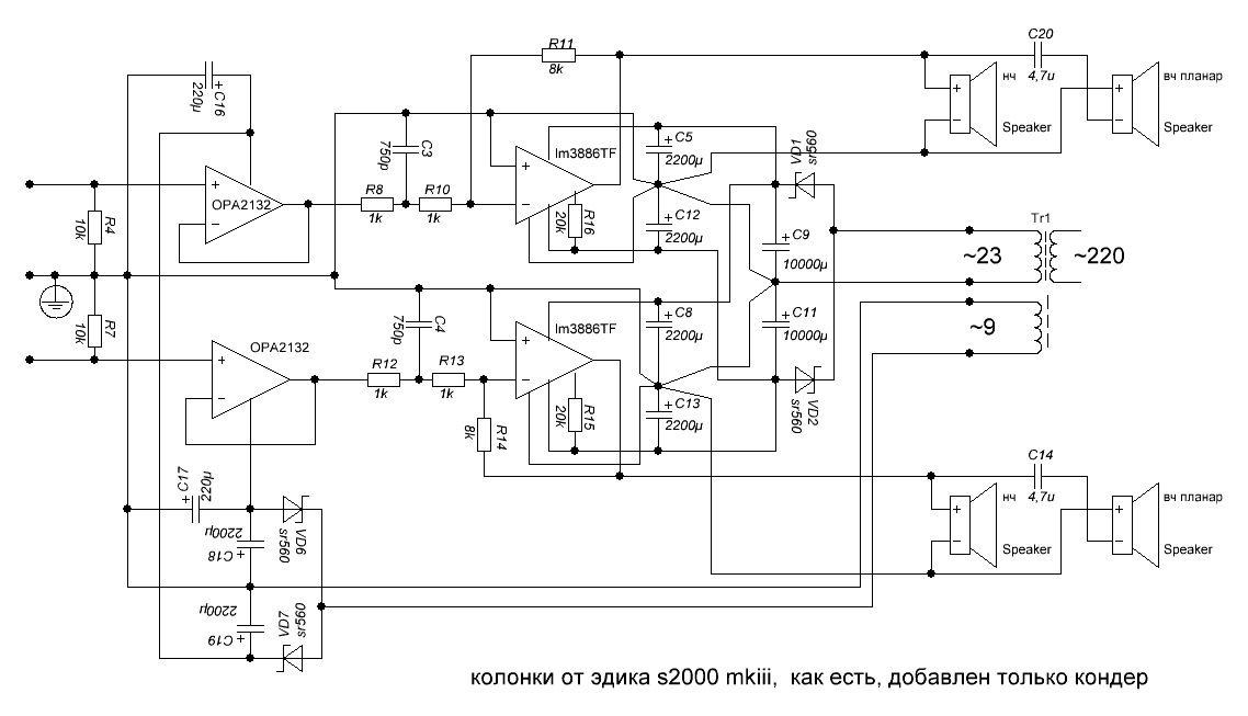 Второе. Усилители мощности вернутся на заднюю сторону колонок. Это будет конструкция: усилитель на ЛМ3886 + блок питания для каждой колонки.