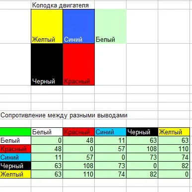 Расположение проводов в клемнике и сопротивление между разными выводами