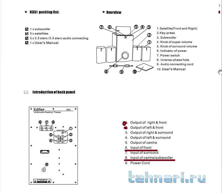 Добрый день всем . прошу помощи с подключением даного саба . дело в том что провода в комплекте не было а входов очень много и я не могу понять конкретно куда подключать . может у кого дома есть такой и сможет подробно рассказать ? И можно ли из 3 входов сделать один чтобы он работал не как раньше 5in1 а 2in1 .