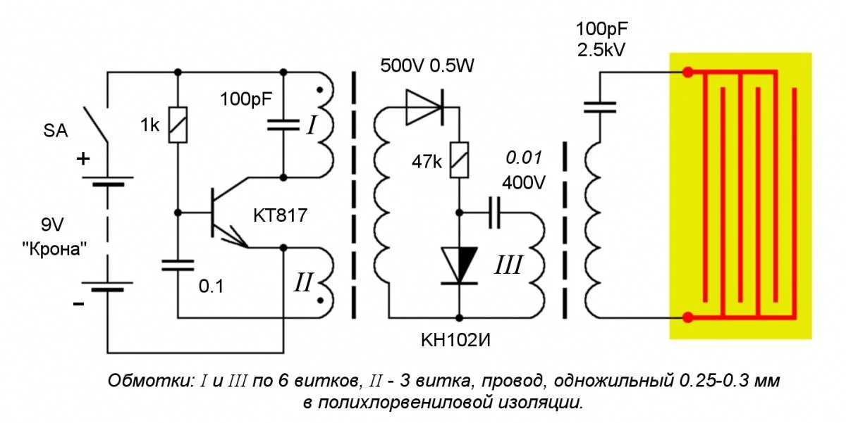 наверное проще было фонарик купить с таким девайсом и достать схему из него чем заставлять дамочку катушки мотать))Trr, вот схема, заградитель, т.е. то что надо заградить, вход или чё?