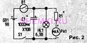 В сущности эта схема представляет собой преобразователь частота-напряжение, чем выше частота входного сигнала, тем выше напряжение на выходе - между минусовым проводом питания и верхним по схеме выводом резистора R6. Пусть при пятидесяти импульсах в секунду (50 герц) напряжение на выходе будет примерно равно 5_и вольтам. Тогда частоте 25 герц будет соответствовать напряжение около 2,5 вольта. Если подключить к выходу частотомера компаратор, настроенный так, чтобы переключался при напряжении 2,5 вольта, то при 25 герцах на входе частотомера получим на выходе компаратора сигнал для зажигания светодиодов.