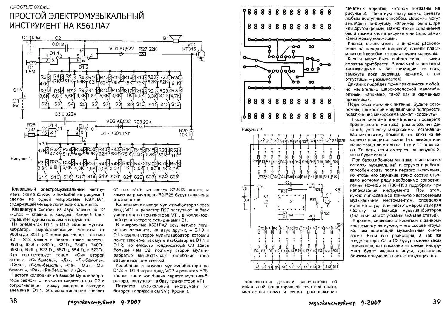 Простой электромузыкальный инструмент на К561ЛА7.webp