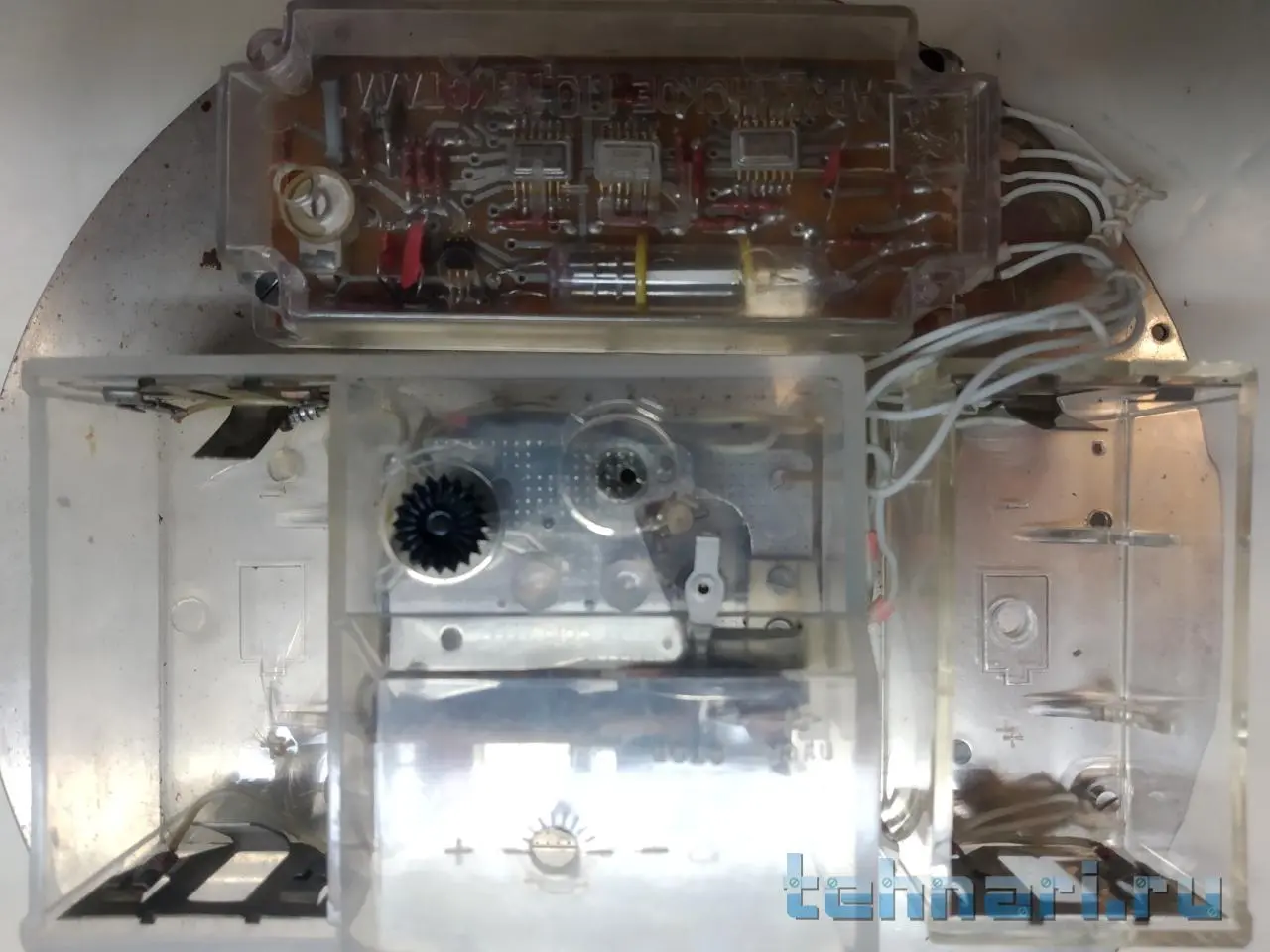 У меня такие на стене висят 80 -го года , механика такая же как на фото , но для чего дополнительный блок - одному богу известно .