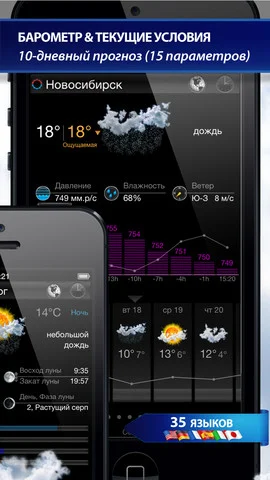 eWeather HD – одно из лучших приложений в AppStore, которое позволит Вам всегда быть в курсе последних изменений погоды. Оригинальный интерфейс, богатый функционал, детальный почасовой прогноз погоды и барометр теперь всегда в Вашем кармане. Планировать Ваши поездки и досуг стало намного легче, поскольку теперь Вы всегда можете узнать когда и в какой час пойдет снег или дождь.