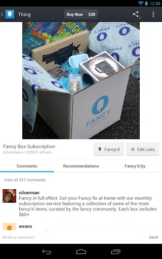 Fancy - социальный магазин, в котором продается множество вещей с большими скидками. Огромная сеть с интересными и дизайнерскими вещами. Приложение получилось некой смесью интернет-блога, магазина и инструмента для закладок.