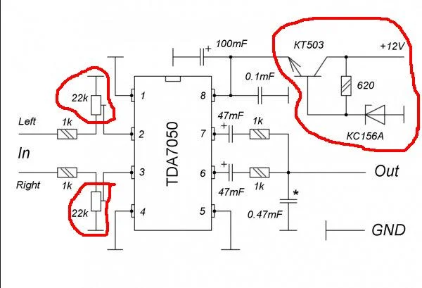 значит можно и Без TDA 7050 нужн резистор на 1Ком (обязательно ли мошьностью 0.125вт?) и конденсатор - так как один канал