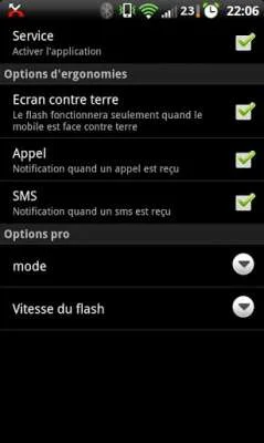 Настроить частоту моргания вспышки, интервал, положение смартфона для активации можно легко в специальном меню на русском языке.