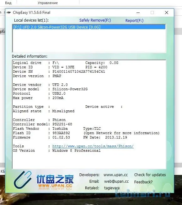 Перестала работать флешка 32 Gb. Проводник видит устройство, но не показывает объем. Любые дальнейшие действия заканчиваются сообщением Виндюка: "Вставьте диск"...