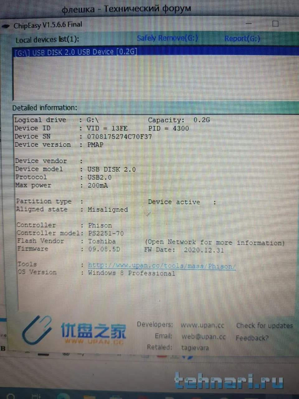 Покажи свою флешку в chipeasy.