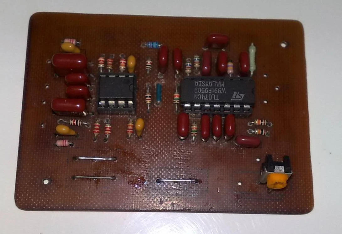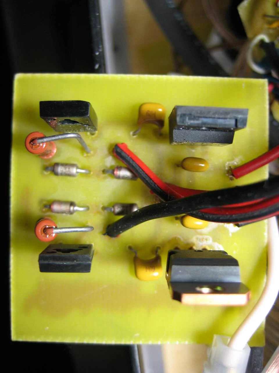 Попробуй сделать стабилтзатор предложеный Azziopom пост 67. Тот который у тебя на фото у меня тоже нормально не работал. Да и есче по началу у меня было похрапивание, избавился от него заменой резисторов в ФНЧ R11-1к,R12-1к на 10к. Я думаю что проблема у тебя в самом Фнч. Сравни фото рабочего Фнч и свой, похоже некоторые конденсаторы нада заменить.Сразу оговорюсь, нигде замыканий нет, а также пару резисторов я заменил на smd