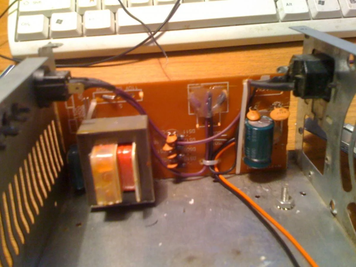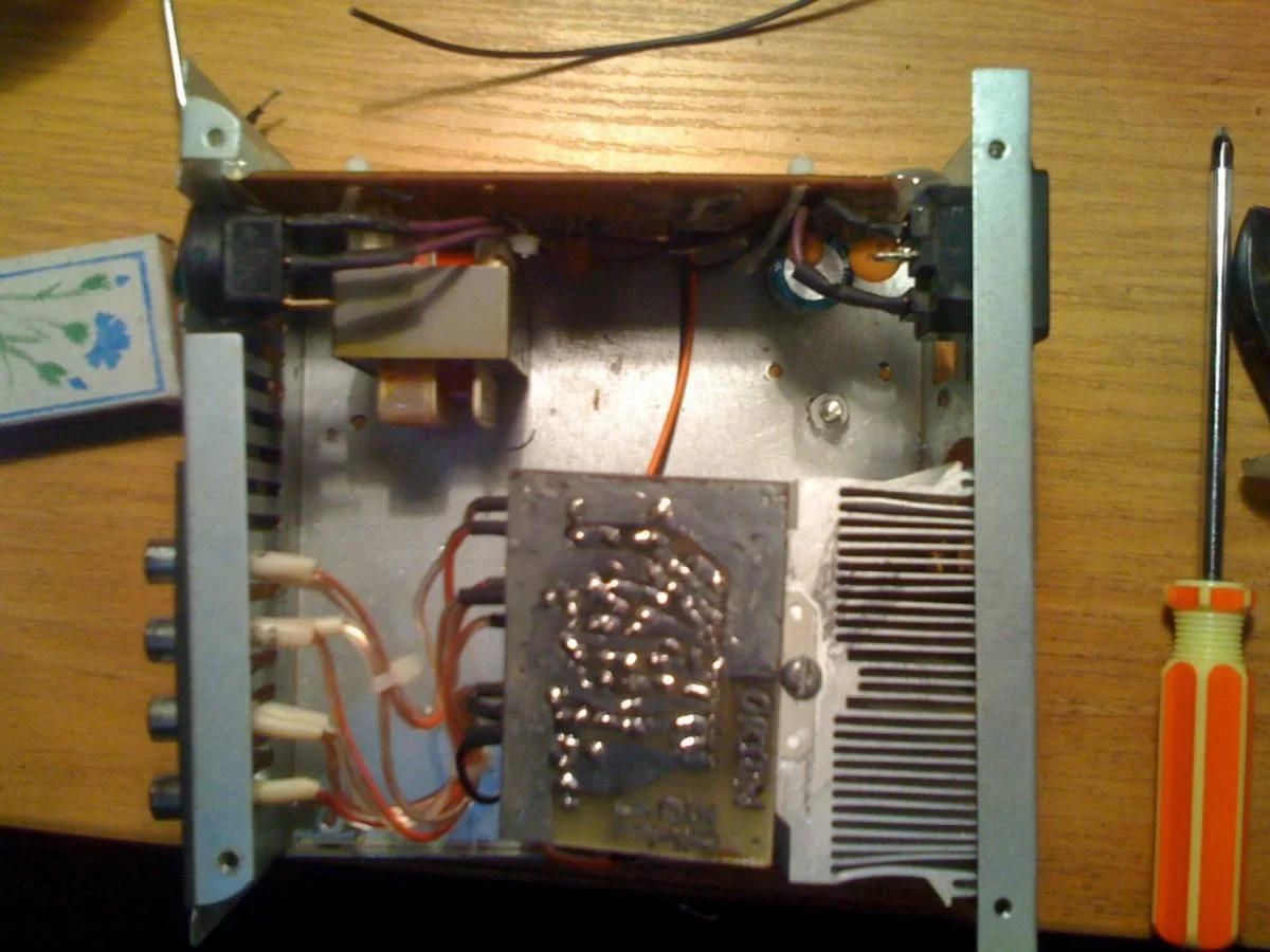 собрал усилитель в исполнении, как видно на фото, блок питания из старого кассетного магнитофона 11вт, так вот, фонит немного из динамиков при отсутствии входного сигнала. ну если включить по громче, то не очень заметно. Пробовал отделять картонной перегородкой, с наклеенным на нее фальгированым скотчем не помогло. Как еще можно экранировать усилитель, или что то переделать с проводами? Еще 1 вопрос, хотел поставить переменный резистор, раньше, когда ток начинал делать, но если его ставить на вход, то ничего не играет, а если на выход усилителя, то он сгорает, или может я безнадежен?:tehnari_ru_837: