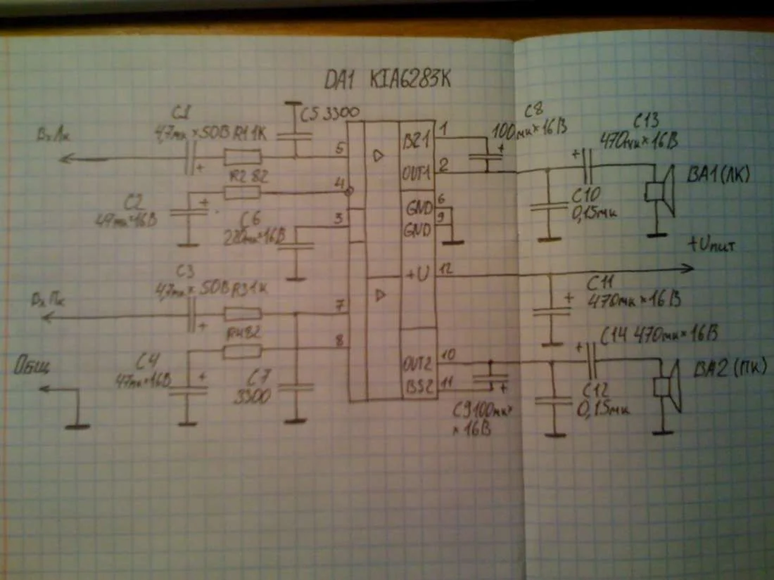 Фон усилителя на KIA6283K