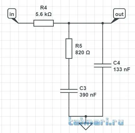 R4C3=2187 мкс, R4C4=750 мкс, R5C3=318 мкс, R5C4=109 мкс, C3/C4=2,92, R4/R5=6,88.