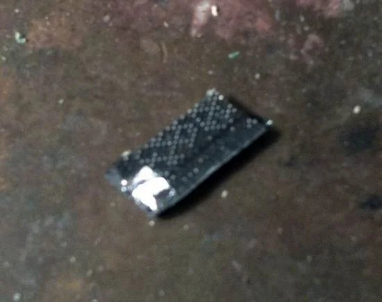 Первым делом «взломщик» отделил кристалл от контактной площадки. Поскольку прогреть плату феном ему не удалось, были использованы радикальные средства – отрезная машинка и пассатижи.