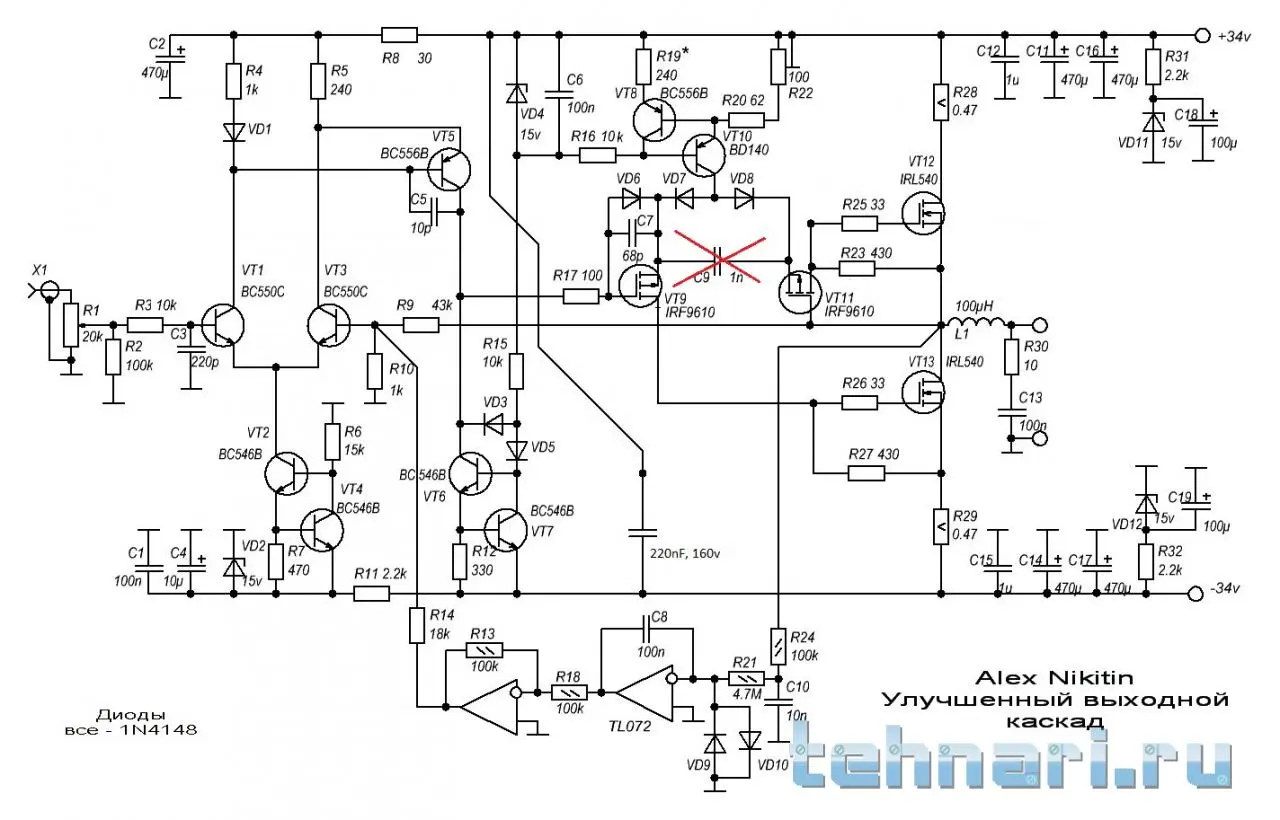 Очередной усилитель :) Теперь уже Никитина. Чистый оконечник, как и просил заказчик.
