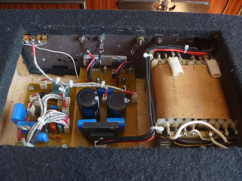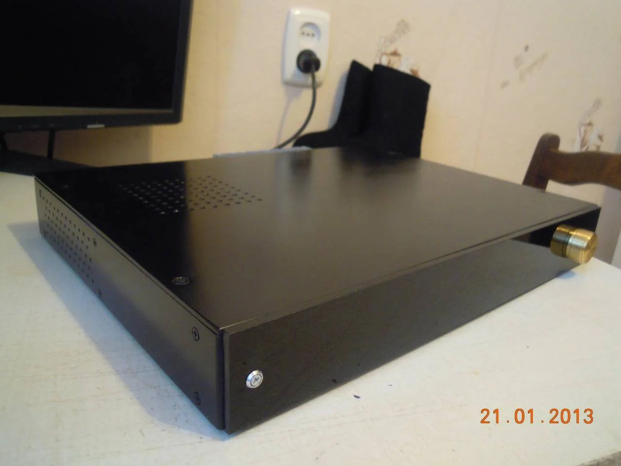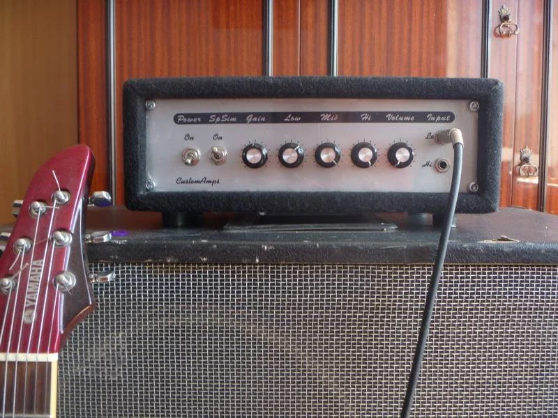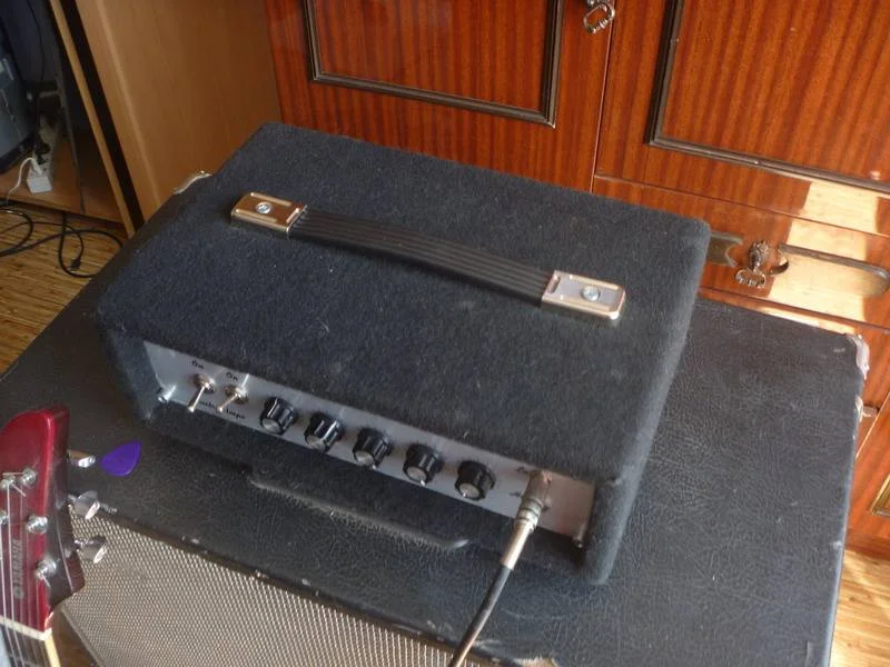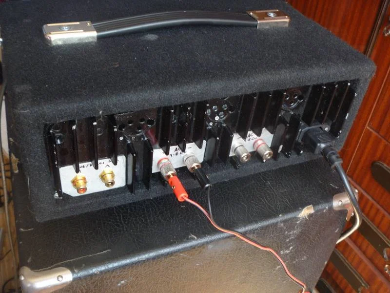 Одна из последних моих поделок, голова для гитарного кабинета. Выходные каскады на TDA7293, 2 канала. Мощность не известна, но в паре с той колонкой (на фото) стекла в комнате так и норовят выпрыгнуть :)