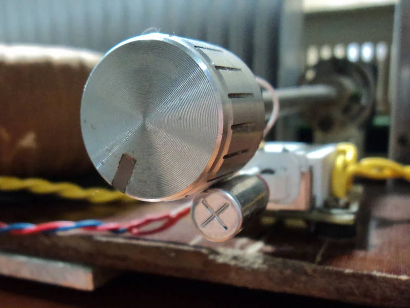 Выключатель переехал вперед. Хорошие кнопки получаются из корпусов электролитических конденсаторов.