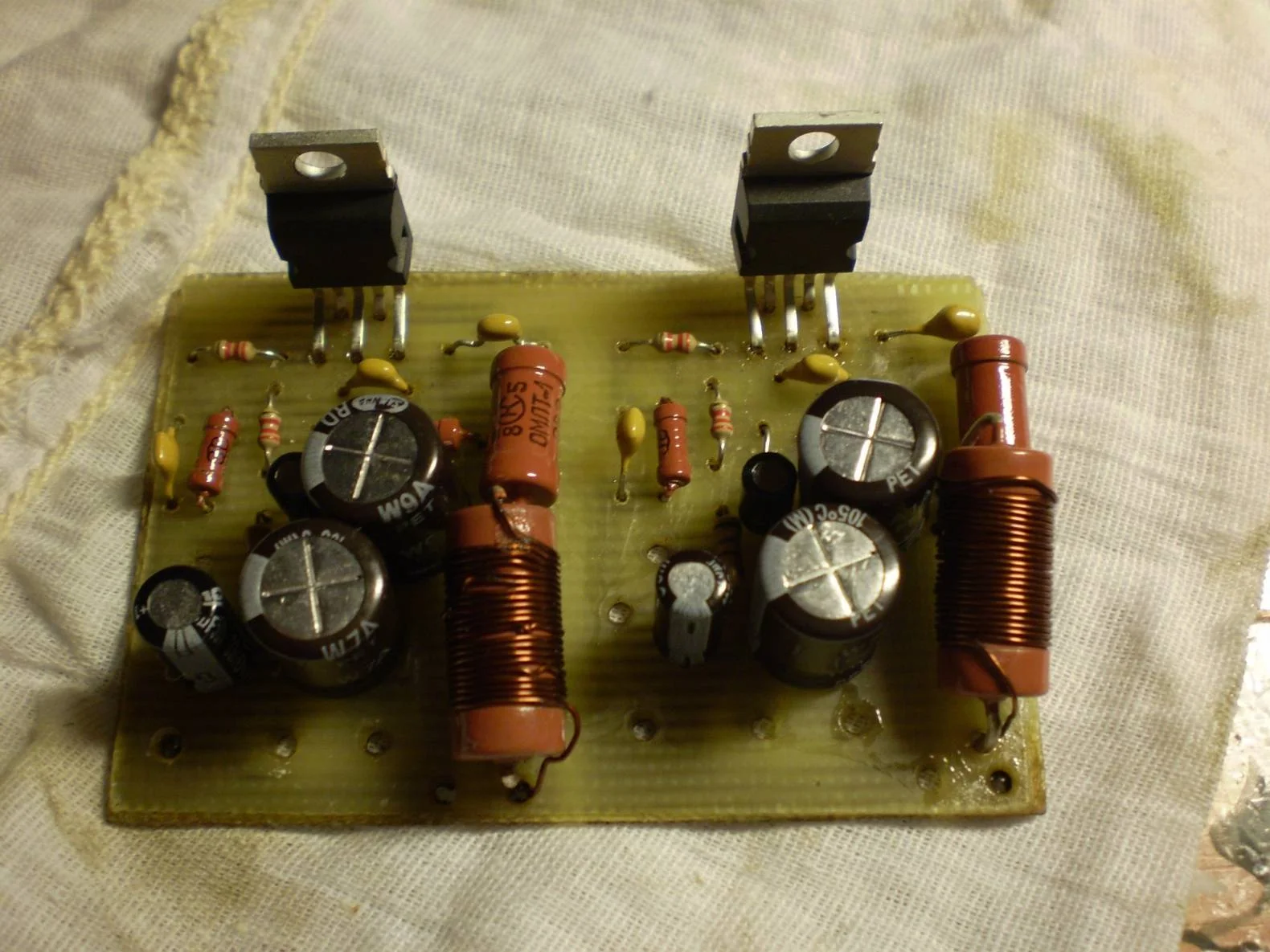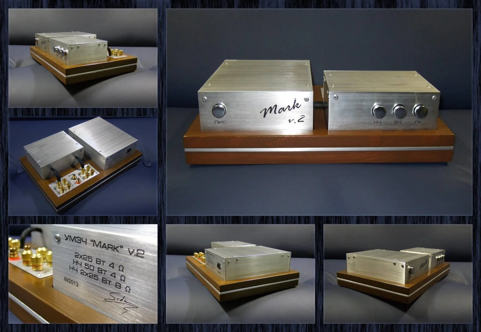 нагрузка 4оМ. усилитель построен на TDA 7294. радиатор от магнитофона Нота 225. конденсаторы 3300uf 63v на плече. каждый зашунтирован китайскими пленочными конденсаторами. Диоды MBR20100 каждый зашунтирован китайскими зелеными пленочными конденсаторами. Поставил так же фильтр от БП компа.