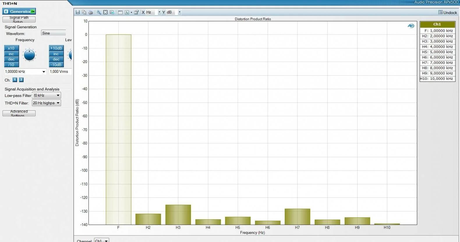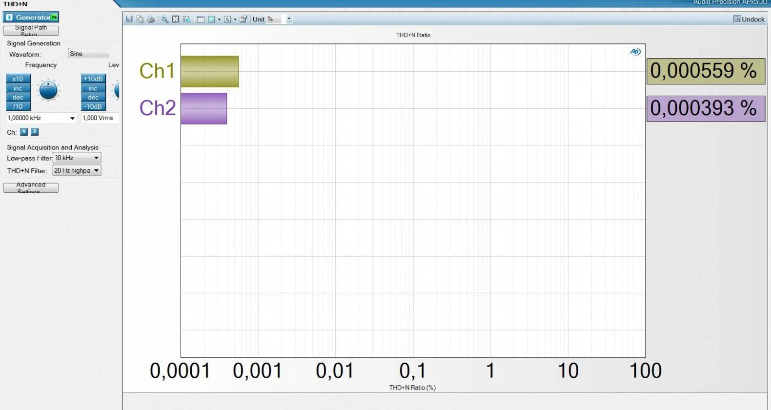 Результаты измерений с помощью комплекса Audio Precision AP586