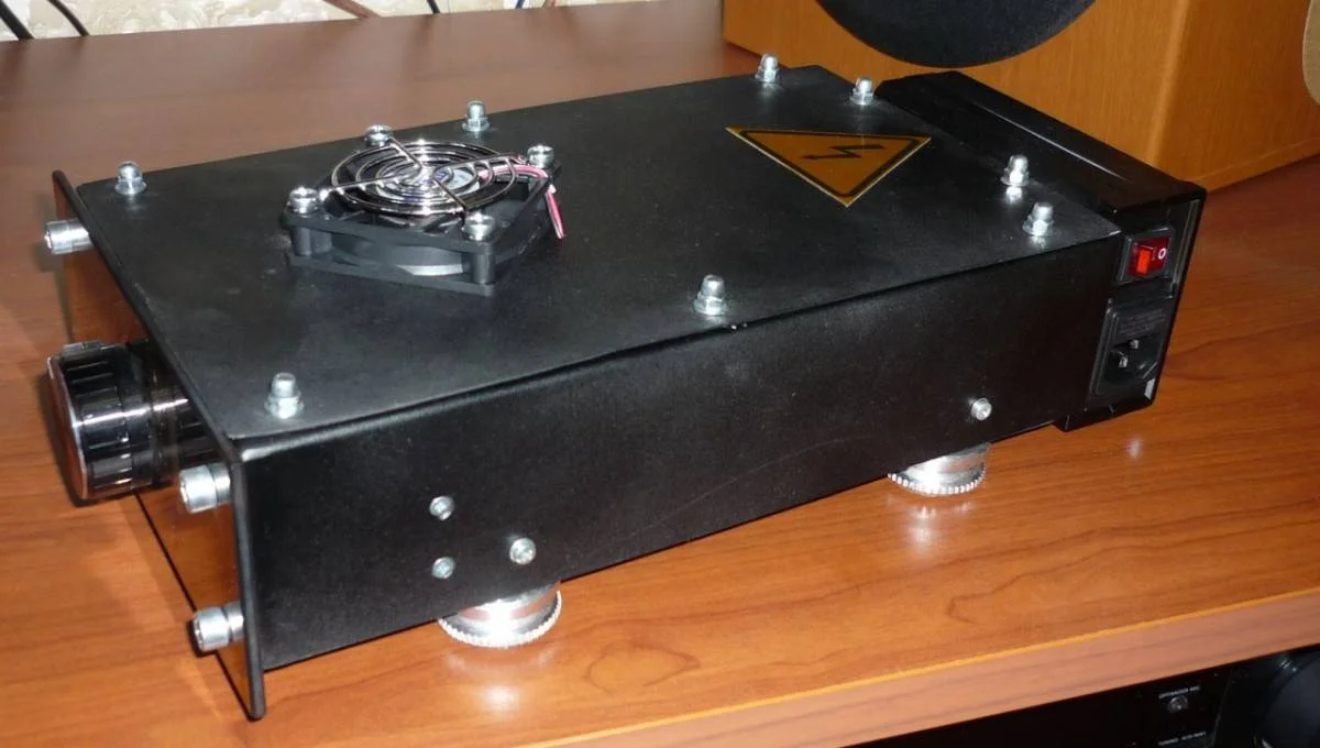 Блин, афигенный получился усилок!!!!!!!!! Красава!!!Попала мне как то в руки, коробка от телефона Моторола. Коробка хорошая, железная, ну в смысле металлическая. Ну и внешне оригинальная, скажем так необычная. И вот, как то в полнолуние, когда активизируются все оборотни и вампиры, активизировался и я ( в хорошем смысле ). И задумал сделать усилитель для компа 2.1, и что бы , непременно хорошего качества, и засунуть его в корбку из под телефона! Ещё задумал я придать своему детищу необычный внешний вид, при помощи блока цилиндра от старой и убитой бензокосилки RYOBI. Задумал - придал! Получился гибрид