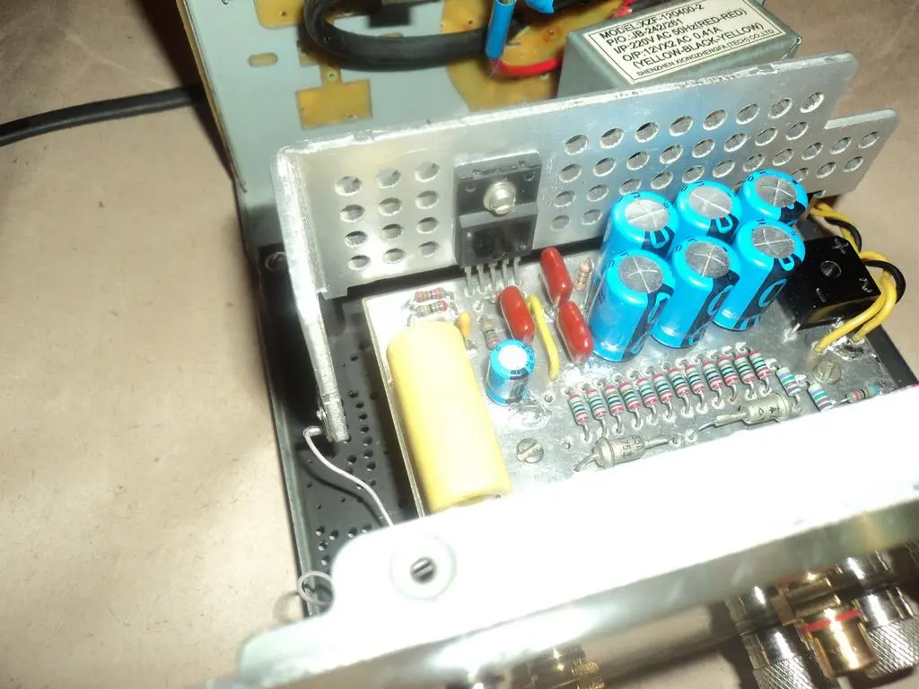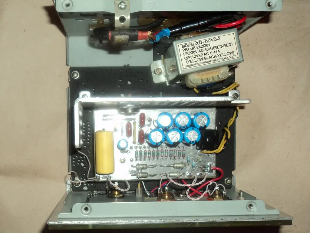 Вот почти конечный вид усилителя. Осталось пару мелочей поставить 2 индикатор громкости, поменять выключатель так как он серого цвета и не хочет вписываться. Ну и поставить на пластине которая между регулировкой громкости и дисплеем воткнуть регулировку НЧ ВЧ маленькие крутилкиtehnoyxi