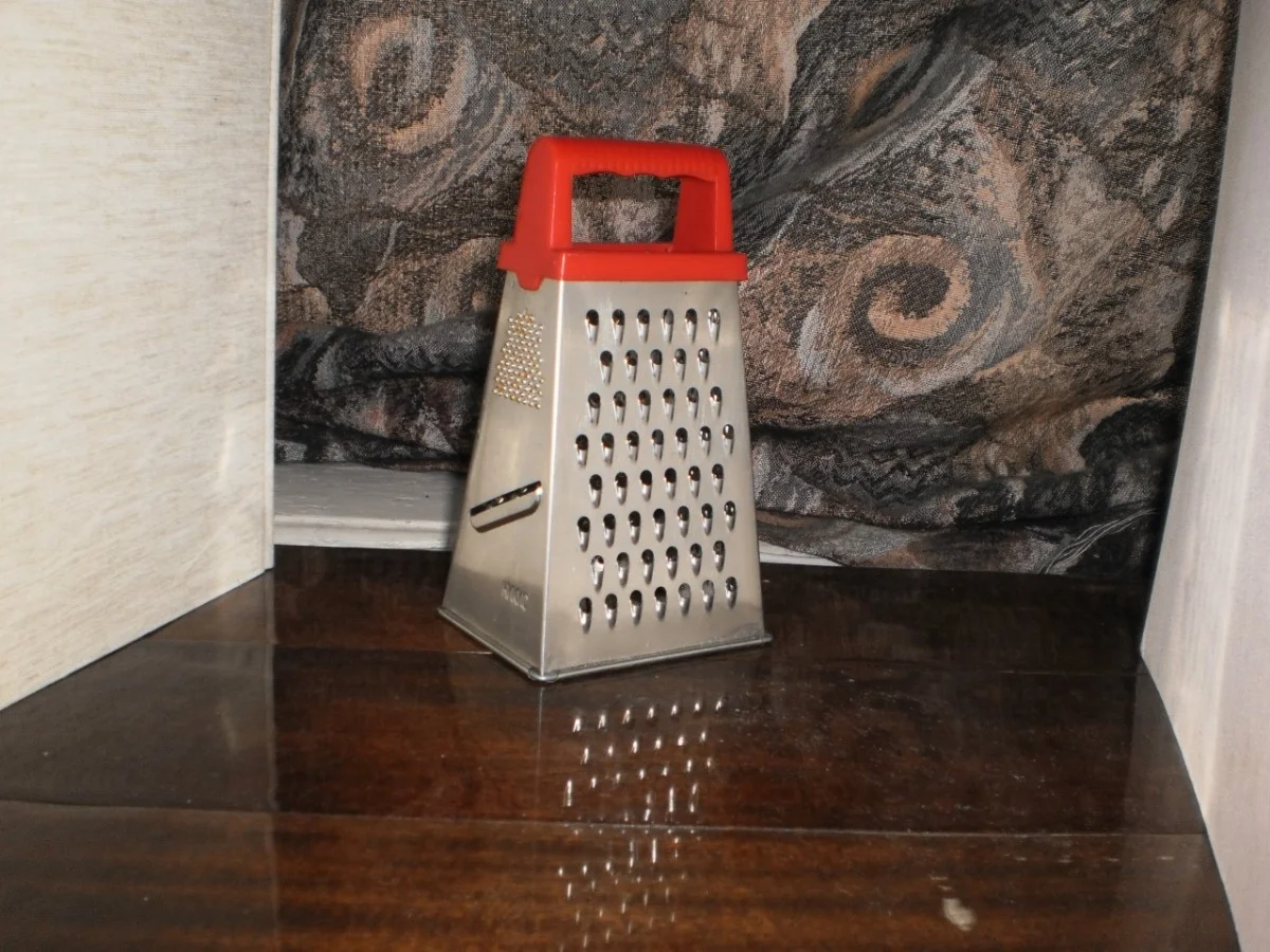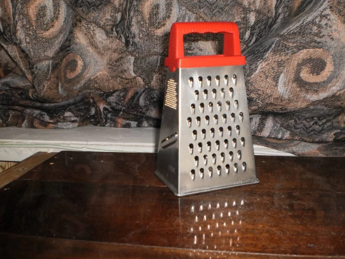 Итак, под Новый, 2011 год я был награждён уважаемой Администрацией нашего сайта цифровым фотоаппаратом Olimpus T-100. И вот, в порядке освоения этого чуда, решил я разобраться с техникой съемки активно бликующих предметов, для чего на просторах Интернета выкопал видеоролик, на котором американский фотограф-профессионал раскрывает секрет такого действа на примере фотографирования кухонной тёрки: