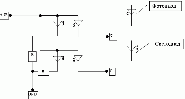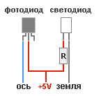 4)что такое ось? Ось это когда, фотодиод используется в качестве подключения к Геймпорту компютера. В данном случае я привел эту схему как один из возможных вариантов подключение.