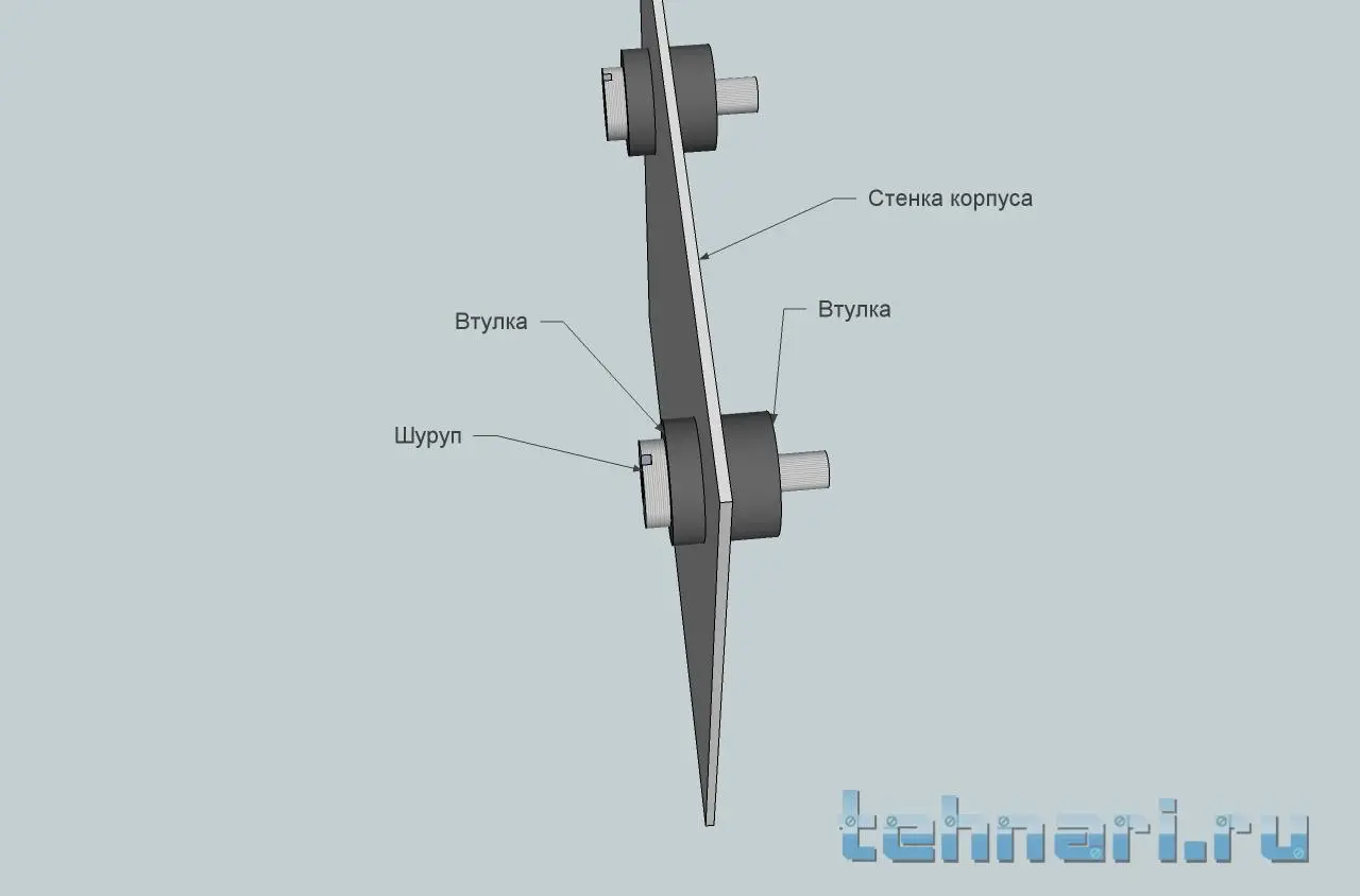 немного не понял, как это будет выглядеть?:) где втулки? да и найти такие винты сложно, там резьба не м3 а какая-то чуть больше, но не м4 :)