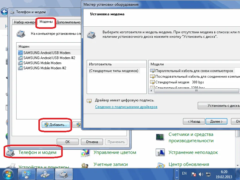 определило как 'устройство 00016' стоит в 'устройства и принтеры' в 'модемах' ево нет и никак не конектится.