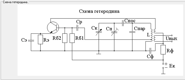 объясните пожалуйста,как в данной схеме гетеродина выполняется условия самовозбуждения и поясните пожалуйста физический смысл формулы и при необходимости вывести ее Pвх=4*h11э/(h21э*Rк.рез.н.*Рк)