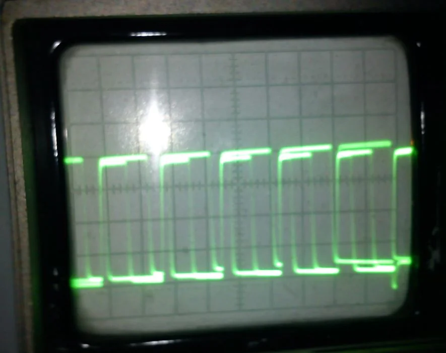 Вы были правы , на затвор полевика идут импульсы ошибки ФАПЧ , весьма забавной формы .Самая лучшая картинка которую удалось получить. На других частотах видно как скважность меняется .