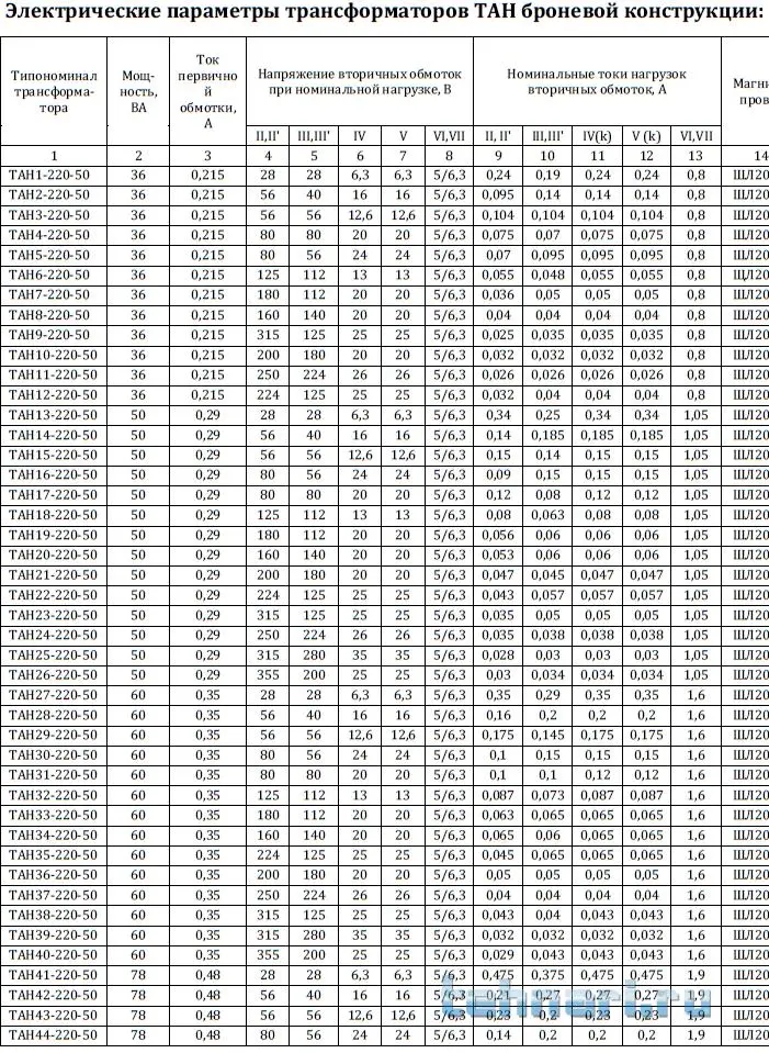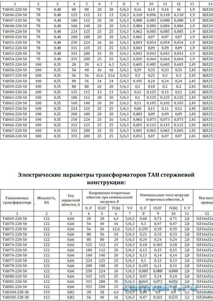 Причём все трансформаторы серии ТАН имеют по две накальные обмотки