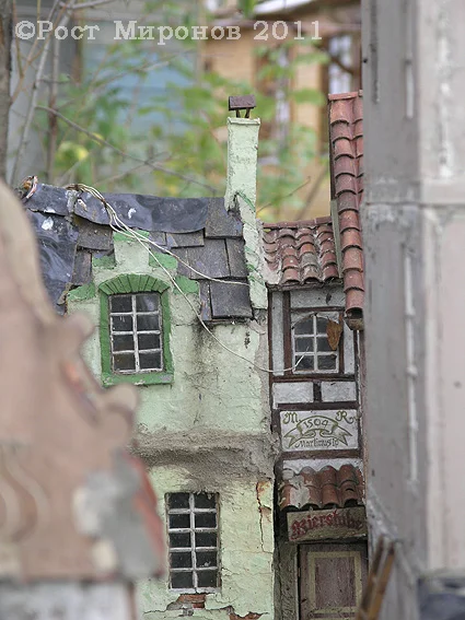 Материал: Бетон; кирпич (1:1- глина, обжиг); дерево (фахверк, заборы, сарай, сортиры, перекрытия, двери, рамы, полы); черепица, настоящая, -глина, обжиг. Площадь города на сегодняшний день составляет 2 кв.м.