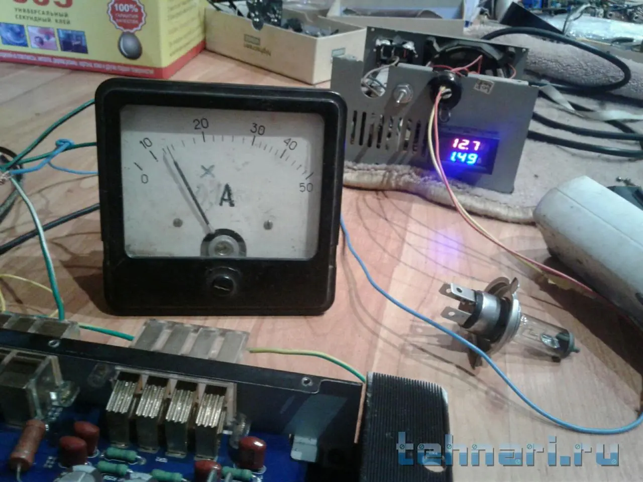 Поставил резисторы на 520 Ом , температура упала , ток снизился на 0,5А при 13,7в и в итоге 1,4А по стрелочному амперметру и 1,58А - по китайскому