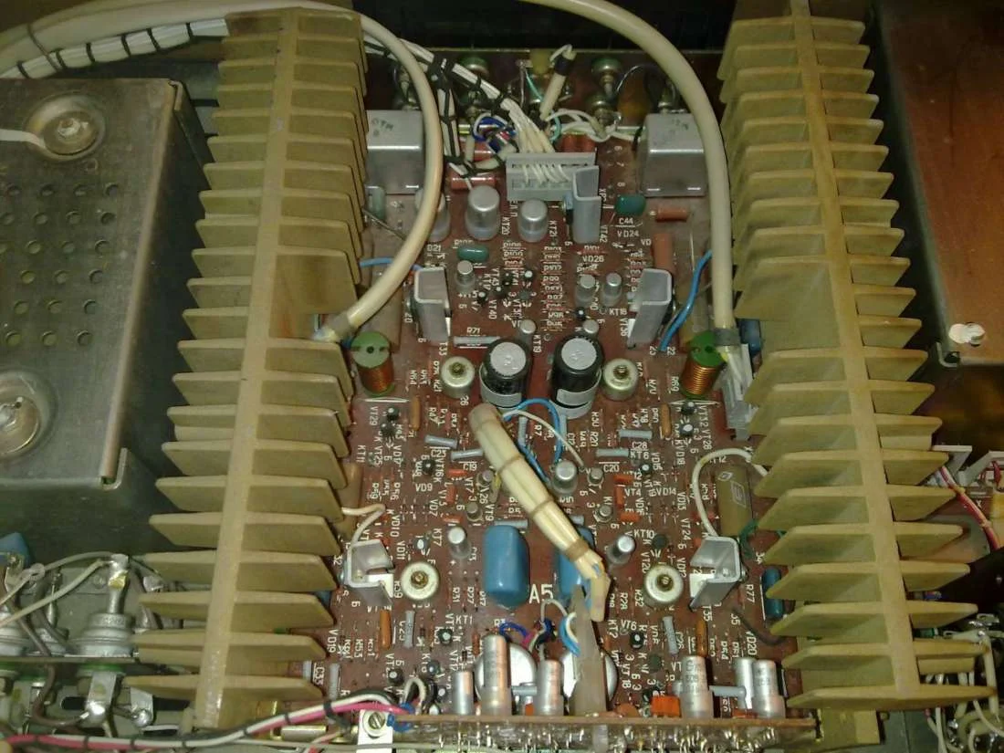 усилитель работает исправно ,на все разьемы подключал все поет ,мне кажется электролиты подсохли год выпуска усилителя 1983г