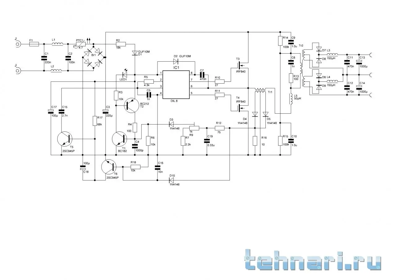 опробовал схему с трансформатором чашка ч48 работает отлично 800 ватная чашка намотал на ней +-40 в по 10А в плече первичка 19 витков вторичка по 5 витков